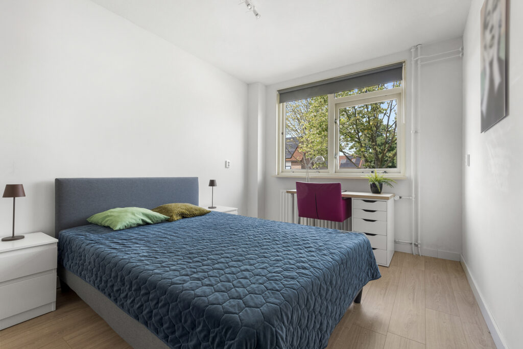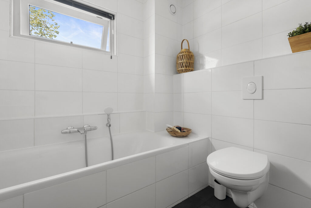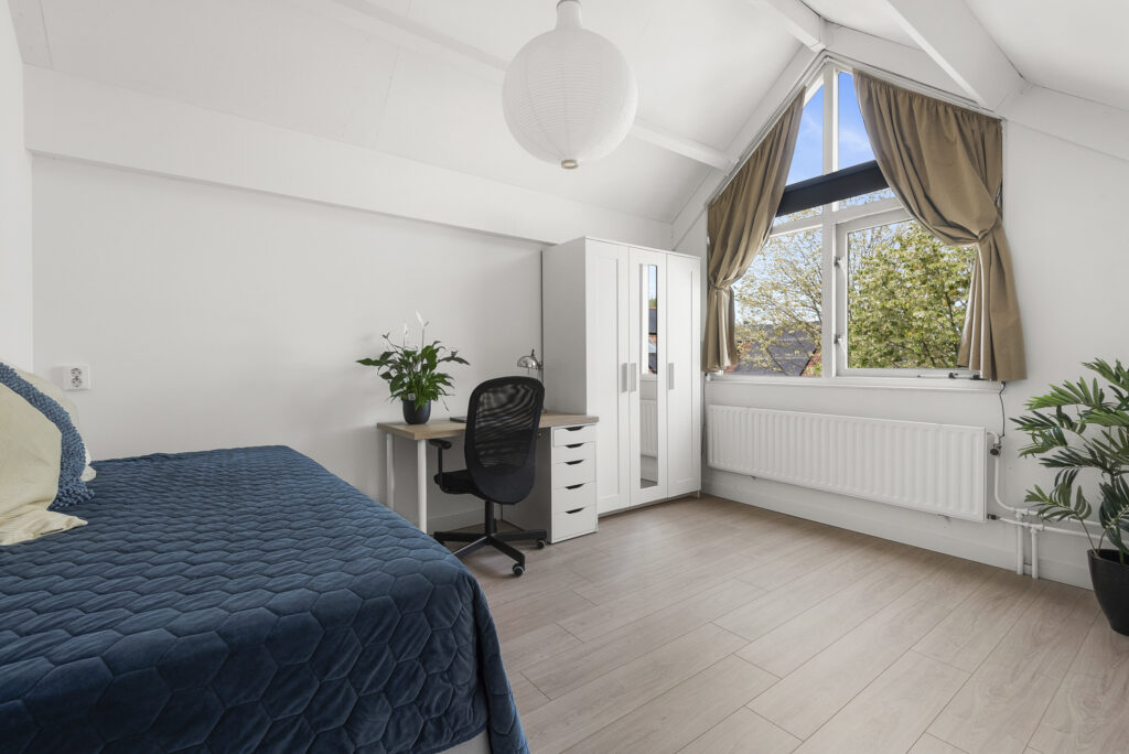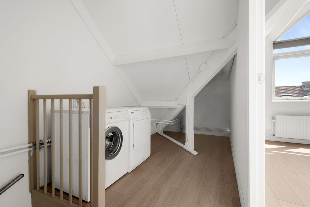 De bovenverdieping biedt verrassend veel ruimte dankzij de royale dwarskap. Op de overloop staan een Miele-wasmachine en -droger, en er is voldoende opslagruimte. Daarnaast zijn er twee grote kamers die gebruikt kunnen worden als slaapkamer, thuiskantoor, studeer- of hobbyruimte. Dankzij de prettige lichtinval is het een fijne plek om te werken of ontspannen.