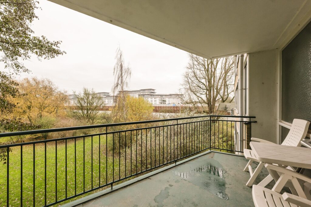 Het balkon op het oosten biedt fijne ochtendzon. Er is een lift in het gebouw aanwezig en op de begane grond bevindt zich een berging van zo’n 5 m2.