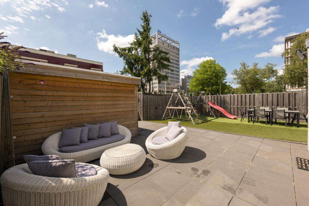 De achtertuin is een absoluut hoogtepunt aangezien de groenstrook reeds van de gemeente is aangekocht en het dus een voor-, zij- en achtertuin betreft. Met een ideale ligging op het zuidwesten geniet je hier van zon tot in de avond. Perfect voor barbecue avonden of ontspannen momenten buiten. De tuin beschikt over een achterom en een terras, terwijl de ruime voortuin extra privacy biedt.