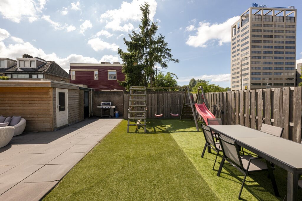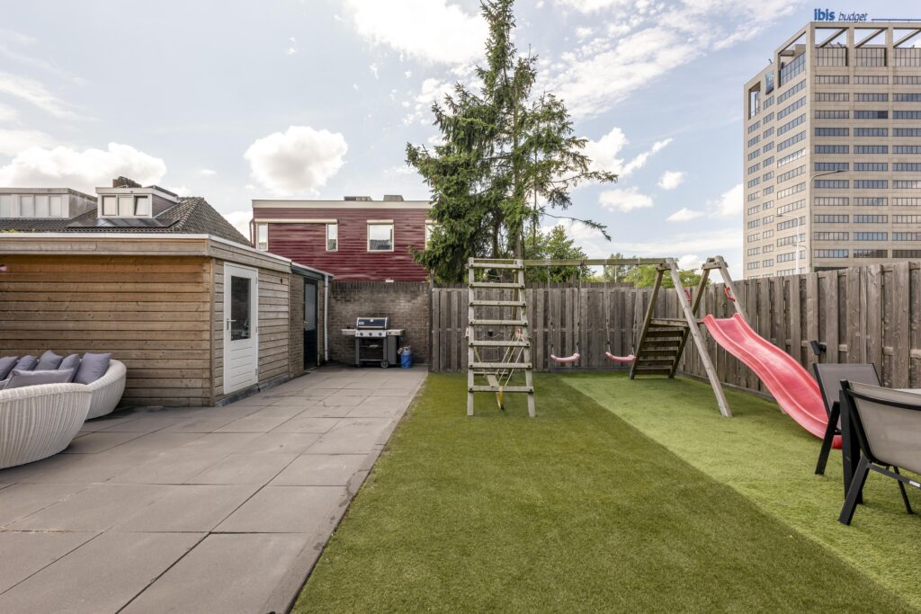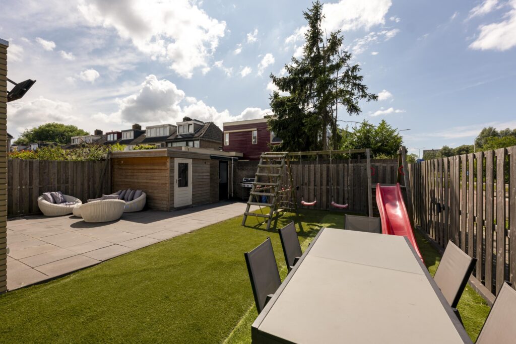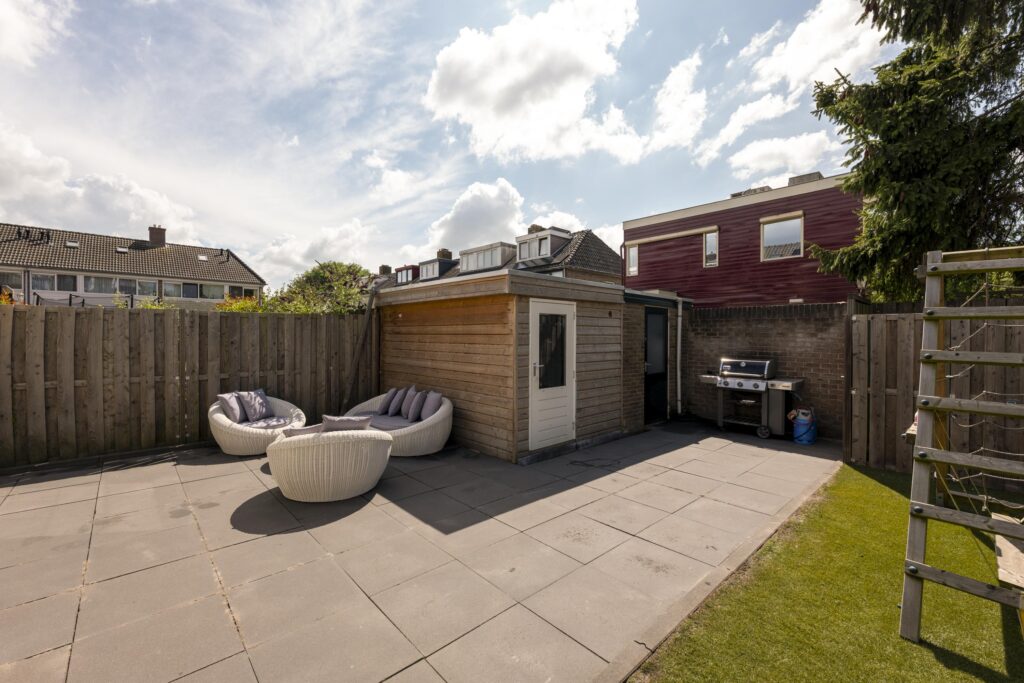 Achterin de tuin staan twee bergingen, ideaal voor fietsen, hobby’s of extra opslag.