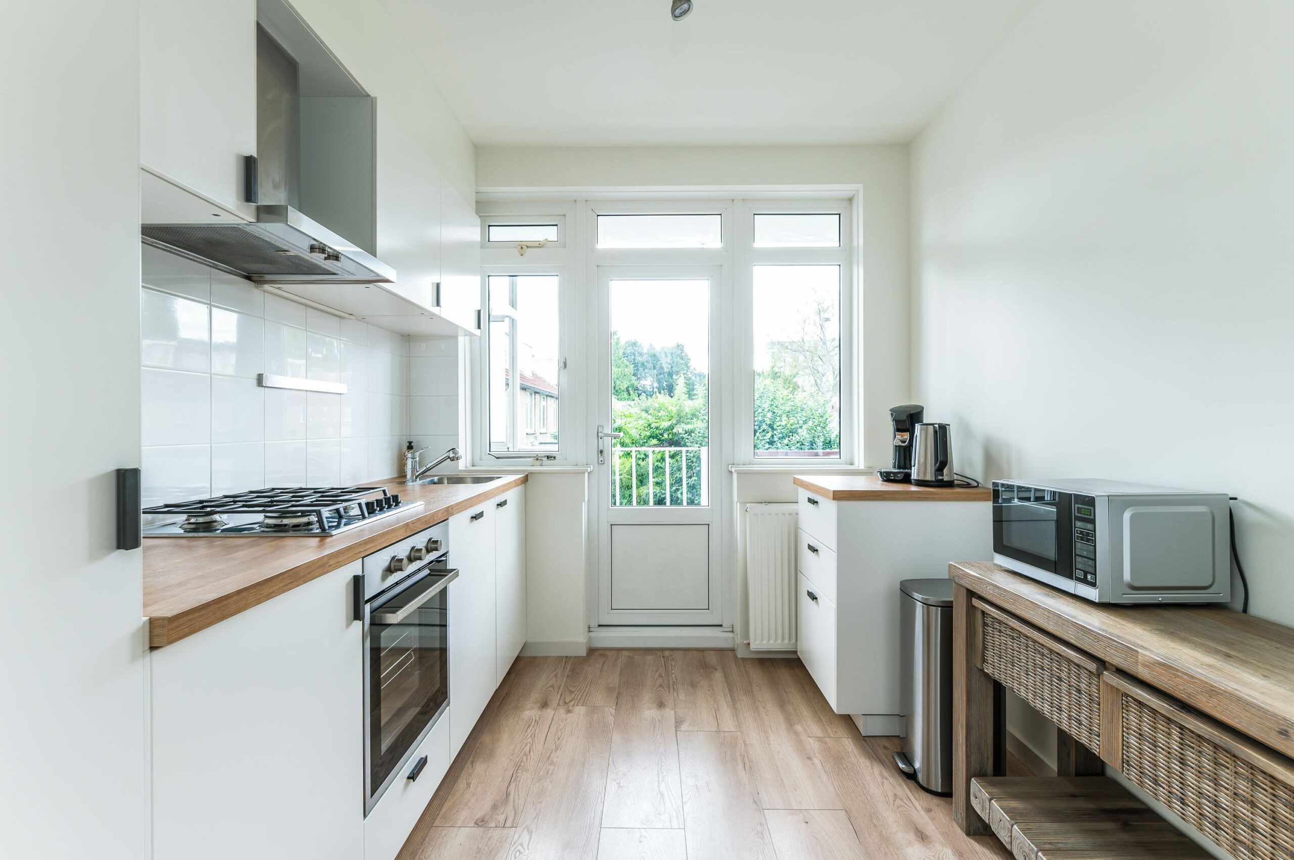 Trap naar de tweede verdieping. Entree met meterkast. Ruime woonkamer met een zonnig balkon op het zuiden. Aparte keuken met inbouwapparatuur. Twee ruime slaapkamers, een badkamer met douche en wastafel en een apart toilet.