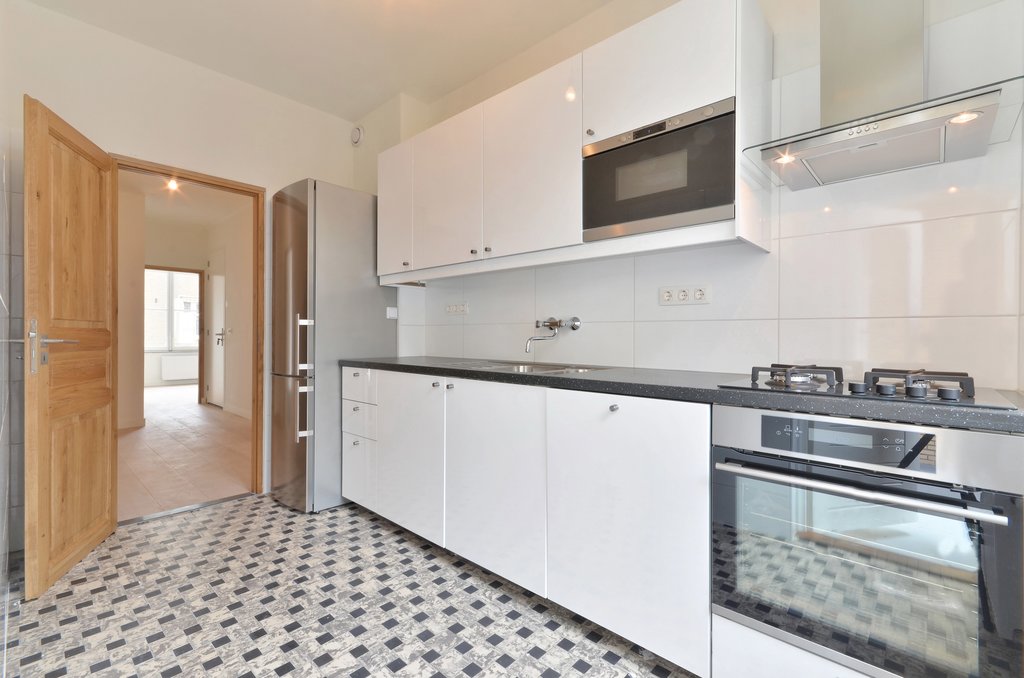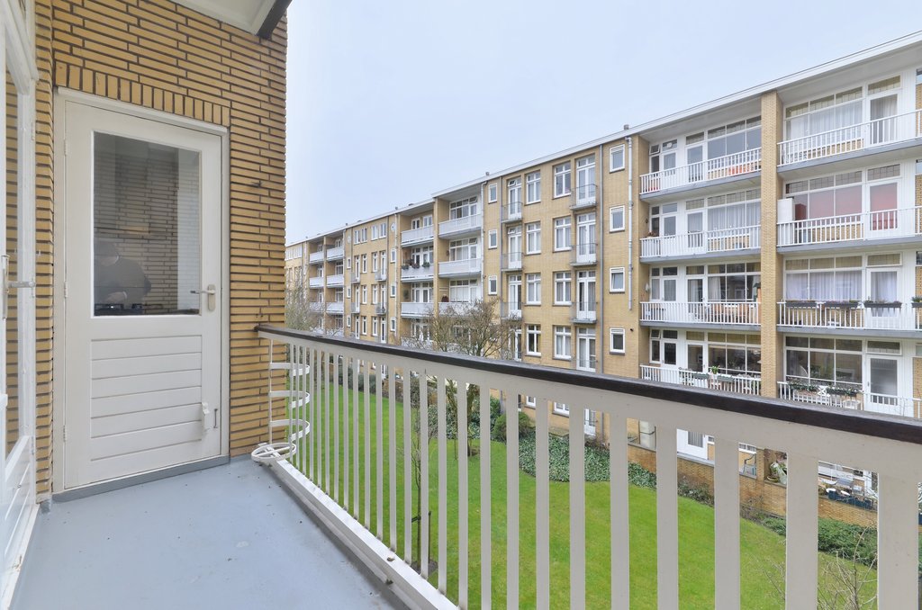 Eigen entree. Ruime hal. Riante en erg lichte woonkamer van voor naar achterzijde. Aan de achterzijde is er toegang tot het balkon op het zuiden. De keuken is gelegen aan de achterzijde en is voorzien van 4-pits gasfornuis, vaatwasser, oven, koelkast en vriezer. Eerste slaapkamer is gelegen aan de voorzijde. De tweede en tevens ruimere slaapkamer is gelegen aan de achterzijde. Badkamer voorzien van ligbad met douche, dubbele wastafel en designradiator is zowel vanuit de masterbedroom, als vanaf de hal bereikbaar.