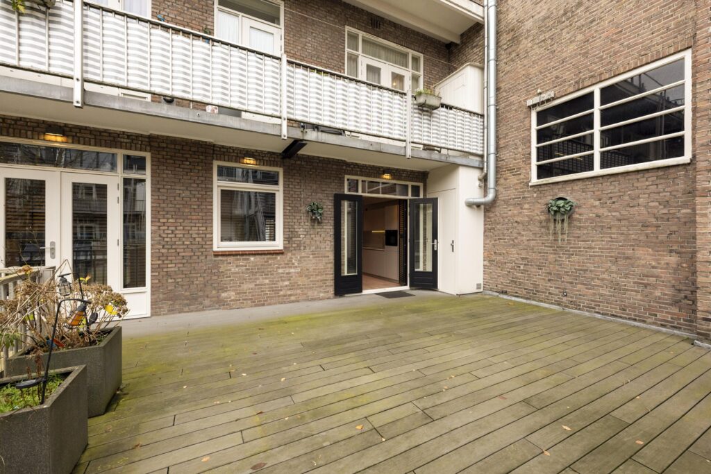 Een van de grootste pluspunten van dit appartement is het royale terras. Deze direct toegankelijke buitenruimte biedt volop mogelijkheden voor een zit- of loungehoek. Het terras is sfeervol ingericht met plantenbakken en vormt een rustige, zonnige plek midden in de stad.