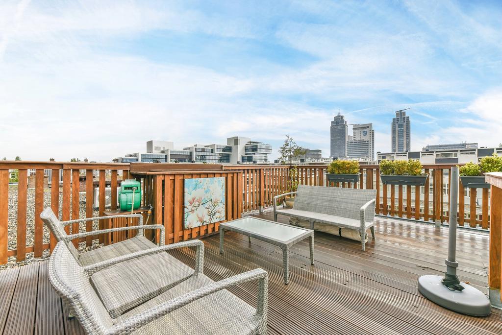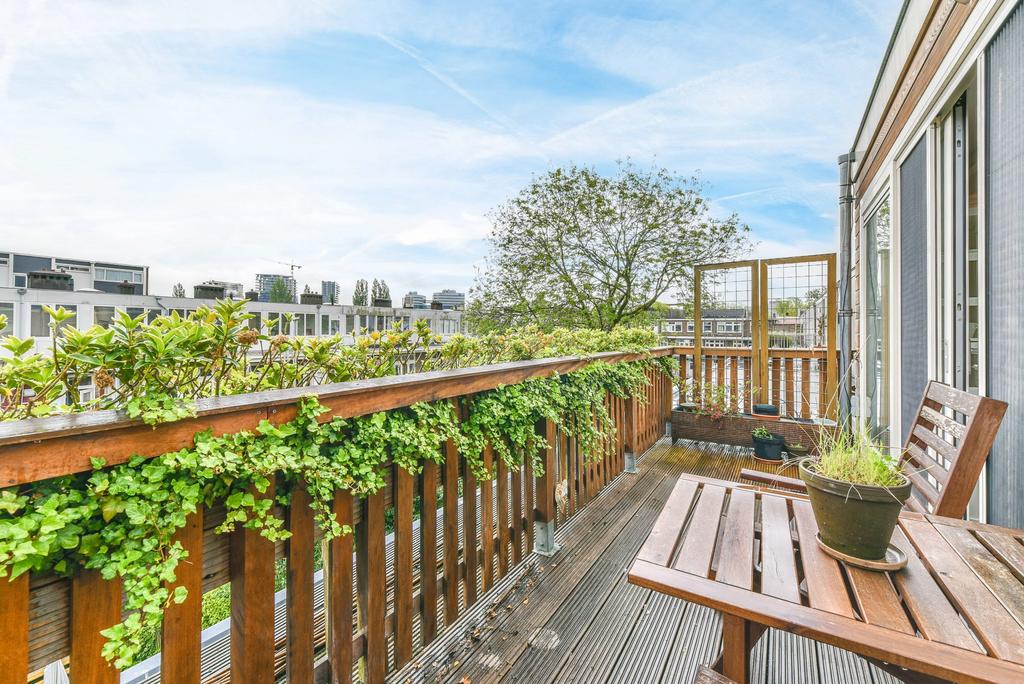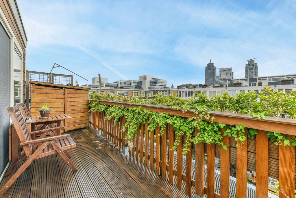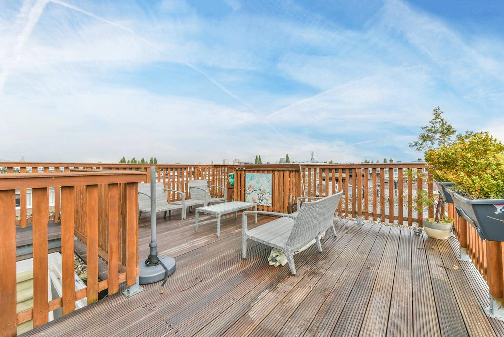 Middels de interne trap toegang tot het ruime en zonnige dakterras.