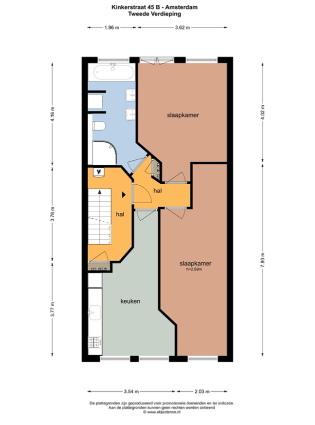 Dit appartement is gelegen aan de Kinkerstraat in Amsterdam en bevindt zich op de tweede woonlaag. De woning is bereikbaar via het gemeenschappelijke trappenhuis.