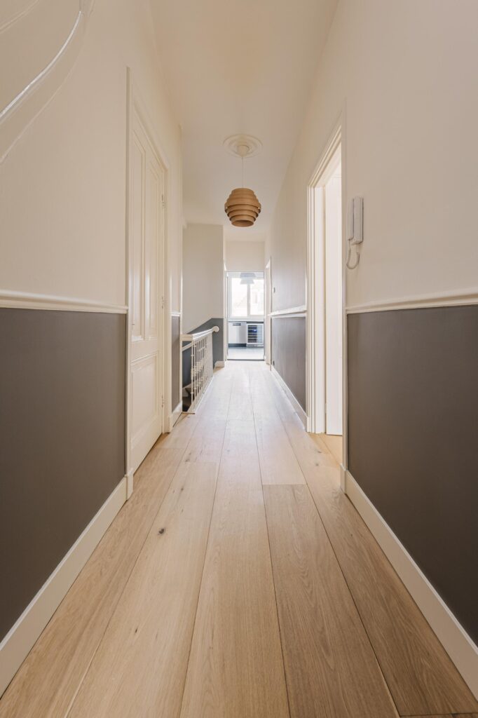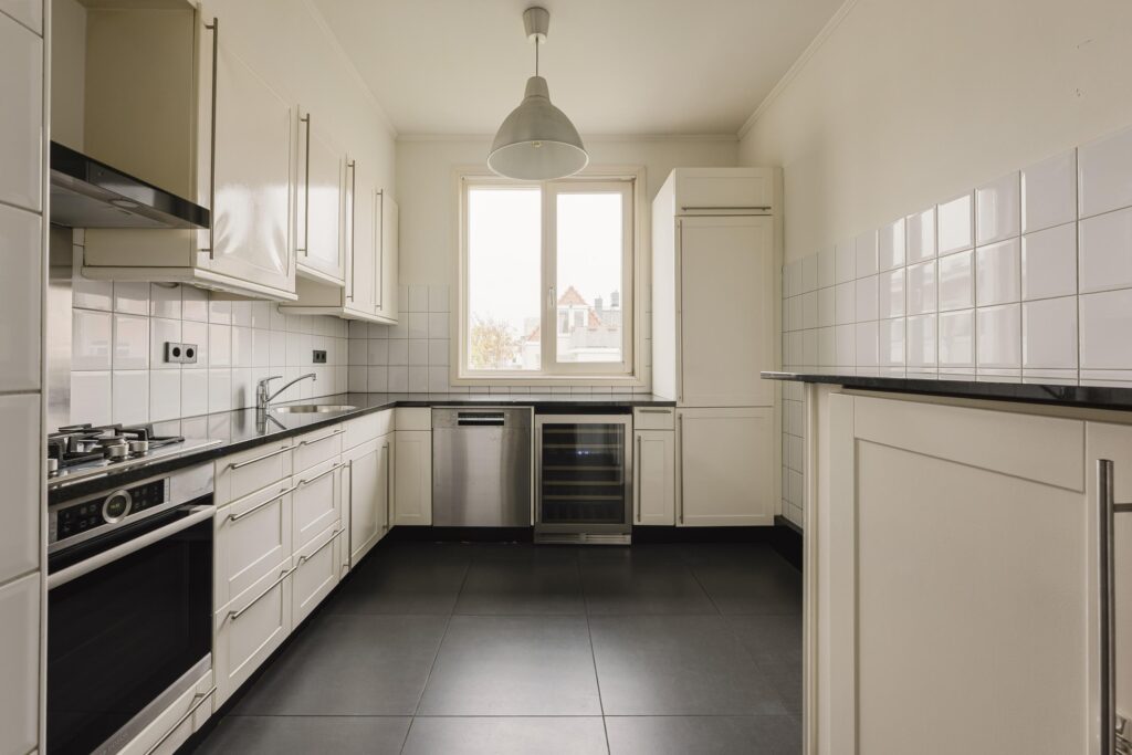 Hall way, separate fully equipped kitchen. Wine fridge is a nice feature.