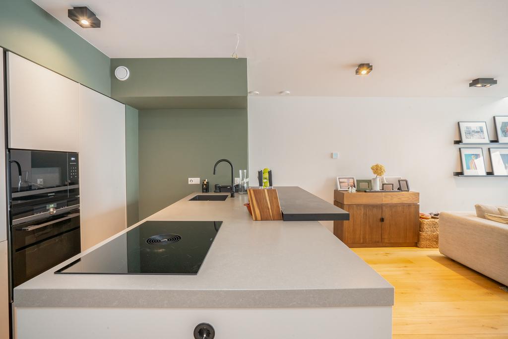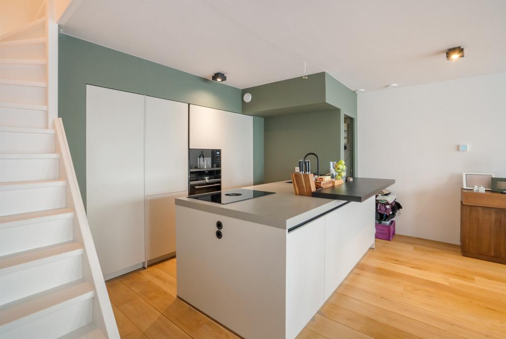 Middels trap naar beneden bereik je de zeer lichte woon- /eetkamer met open keuken en uitzicht over het water. De keuken is van alle gemakken voorzien.