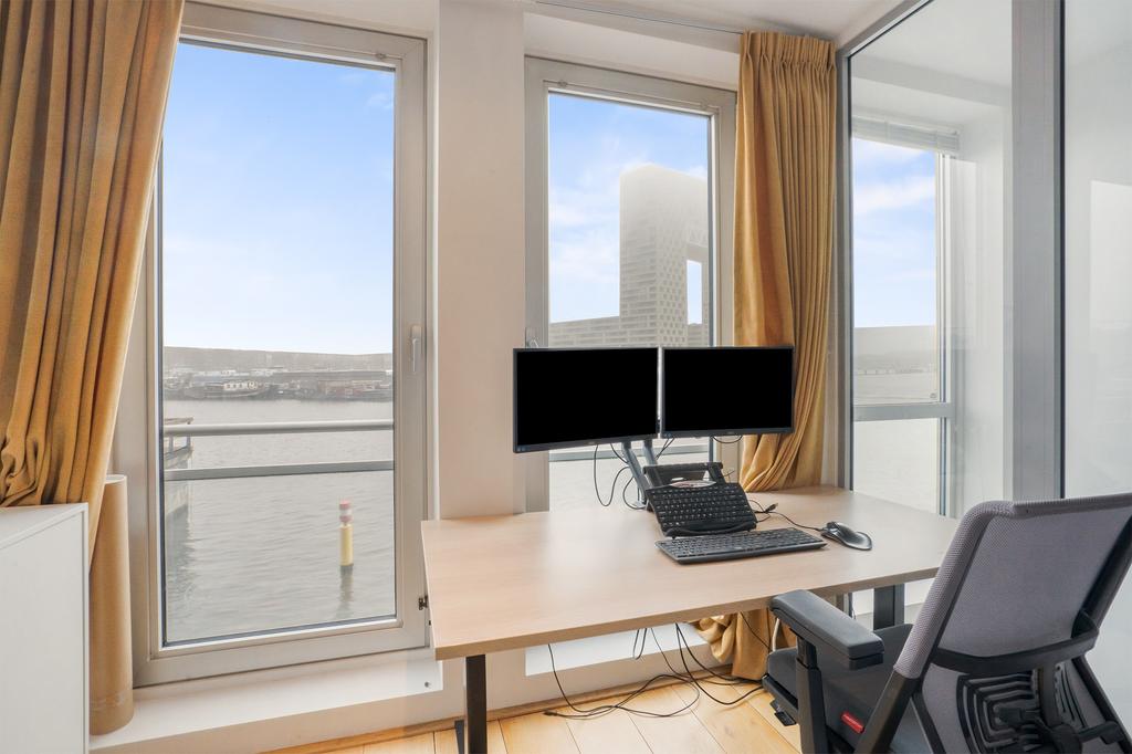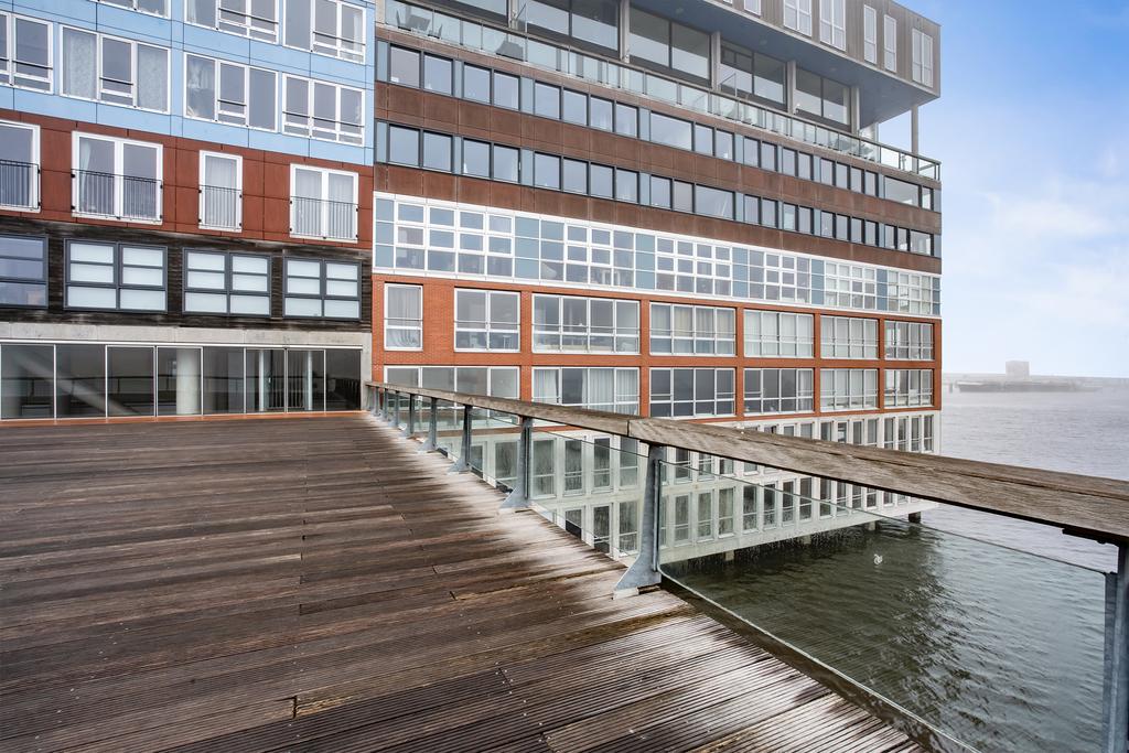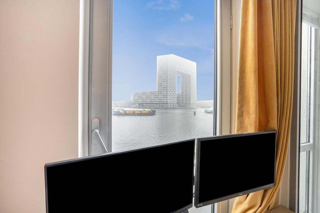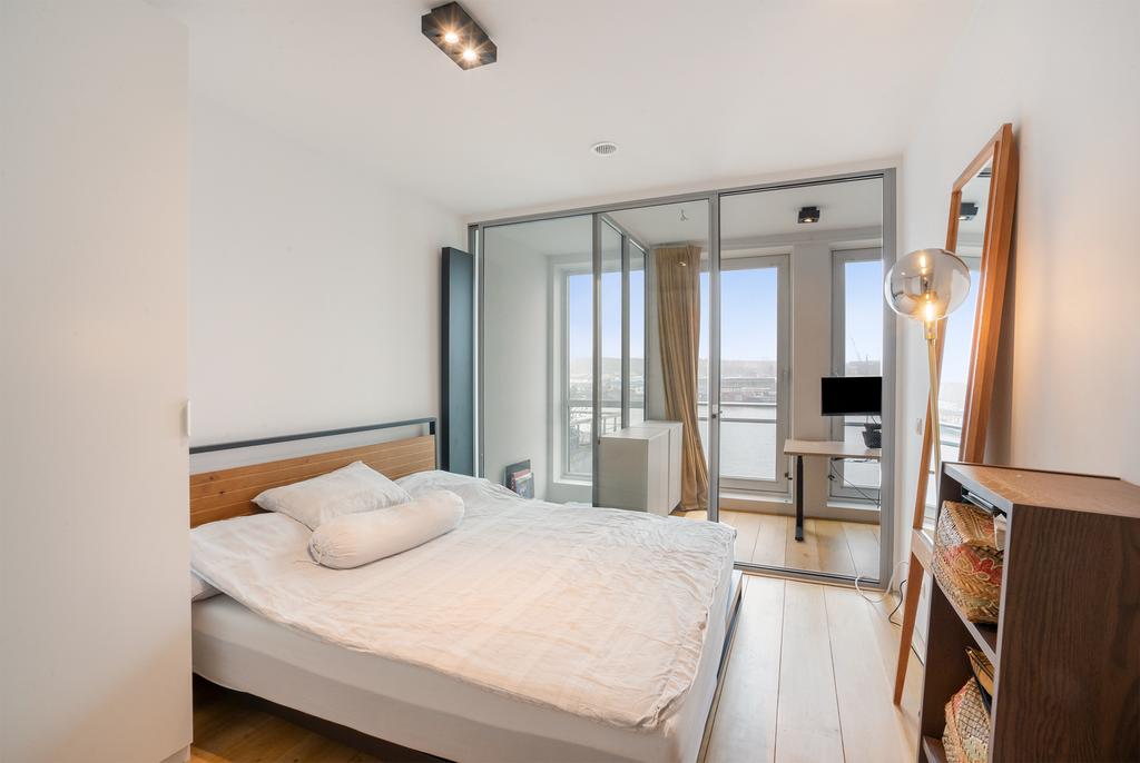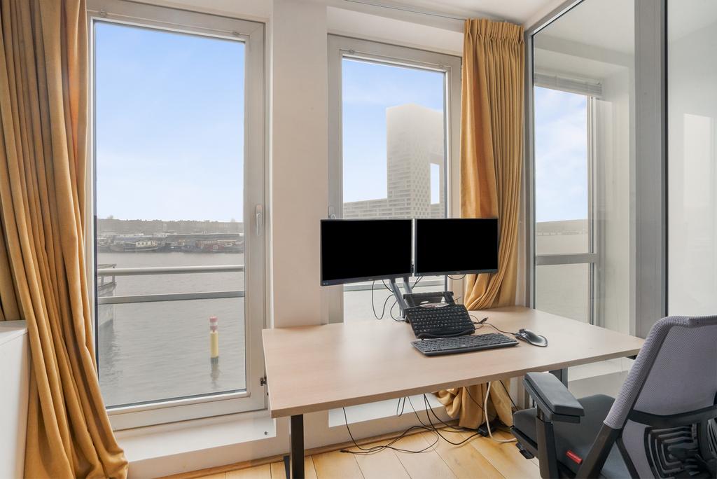 Volledig gemeubileerd modern en zeer licht dubbel benedenhuis met twee slaapkamers met uitzicht over het IJ, de NDSM-werf en de Oude Houthaven