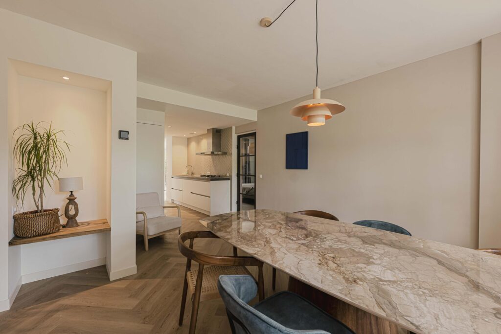 Toegang middels eigen entrée tot hal. Via de hal toegang tot alle vertrekken. De ruime en lichte eetkamer loopt soepel over naar de open keuken, slaapkamer en woonkamer. De badkamer is voorzien van een dubbele wastafel, een inloopdouche en een aansluiting voor de wasmachine.
