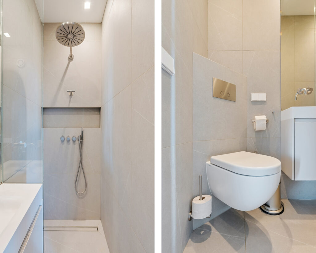 Via de gang is tevens een tweede badkamer bereikbaar, voorzien van douche, toilet en wastafel.