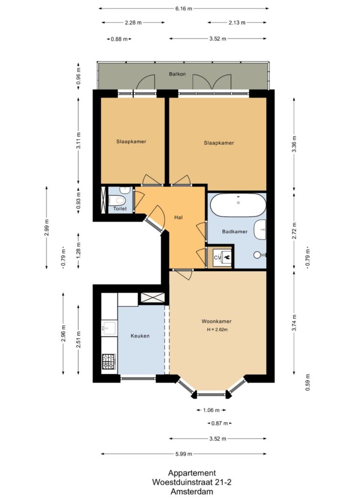 De Meetinstructie is gebaseerd op de NEN2580. Het object is opgemeten door een professionele organisatie en eventuele discrepanties in de gegeven metingen kunnen AmsterHomes niet worden aangerekend. Koper verklaart in de gelegenheid te zijn gesteld om een eigen NEN 2580 meting te (laten) uitvoeren.