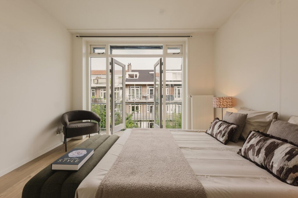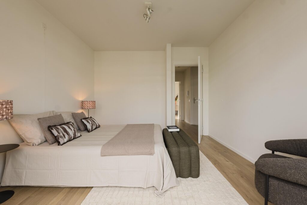 Aan de achterzijde bevinden zich de 2 slaapkamer, 1 grote en 1 kleinere. Beide kamers geven toegang tot het balkon.