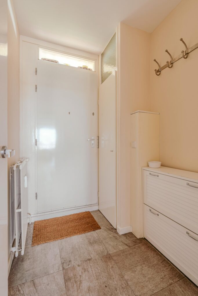Binnenkomst via de eerste hal met toegang tot de meterkast, geiserkast (Nefit 2012) en garderoberuimte. Vanuit hier bereikt u de centrale hal die toegang geeft tot alle vertrekken.