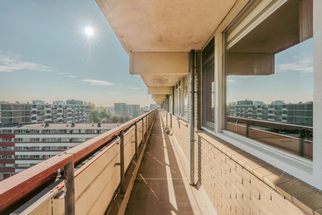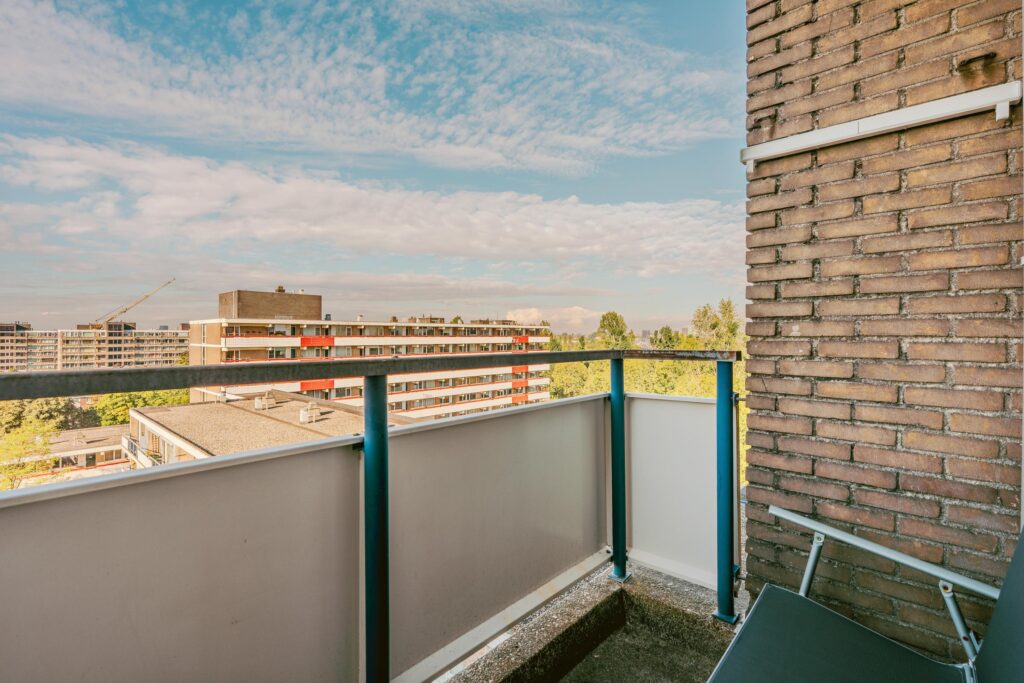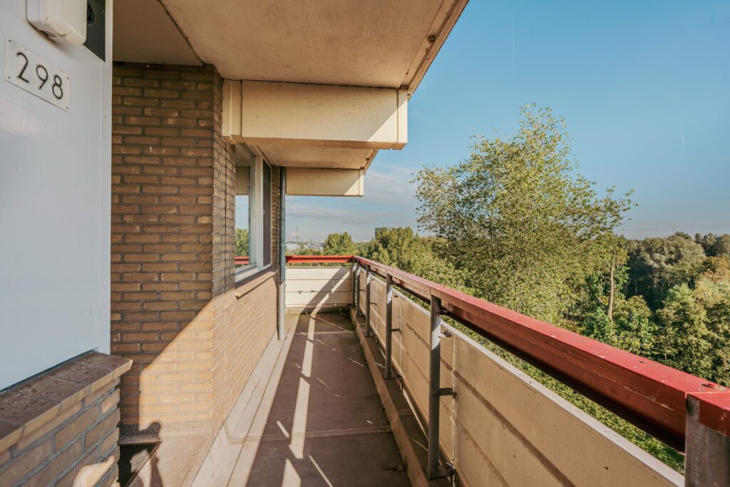 Het zuidwestelijk gelegen balkon biedt zon van vroeg in de middag tot zonsondergang. Dankzij de hoekligging kunt u ook heerlijk vertoeven aan de galerij zijde