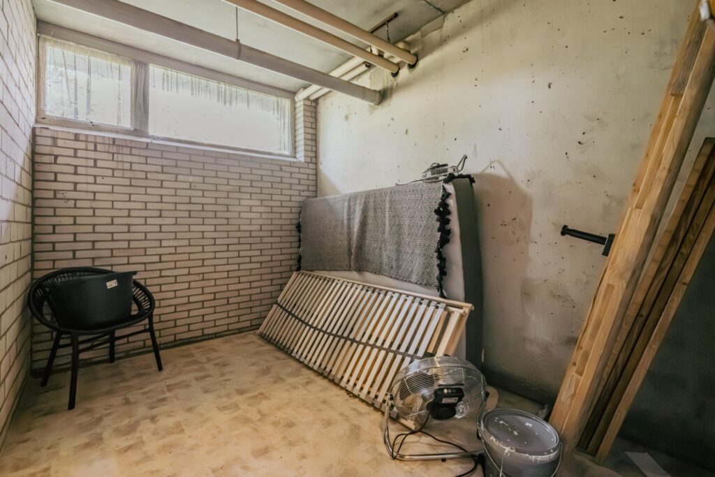Eigen berging in de onderbouw van het complex.