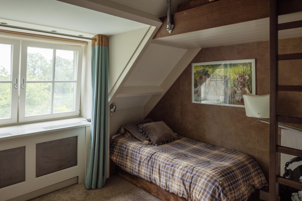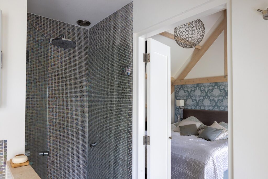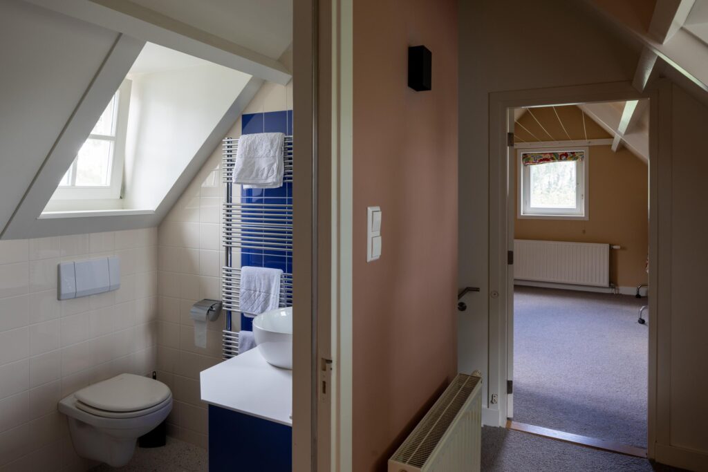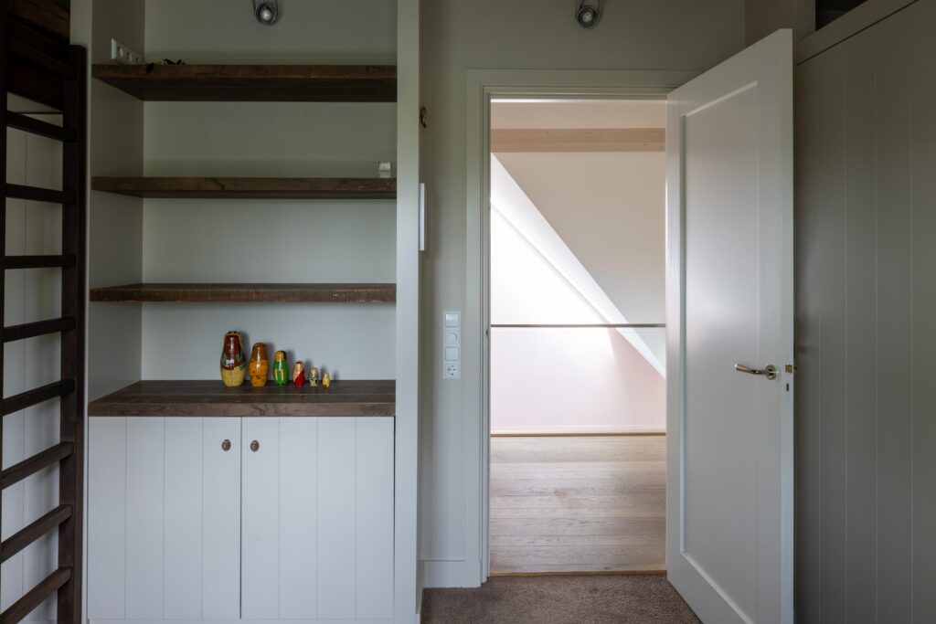 What immediately stands out is the attractive, spacious kitchen and living room with fireplace – the beating heart of the house. Cosiness and functionality come together here. Cooking while looking out over the water, dining with the whole family or having drinks with friends: it’s all possible. The living areas are light and spacious, with large windows that embrace the view and bring the outdoors inside.