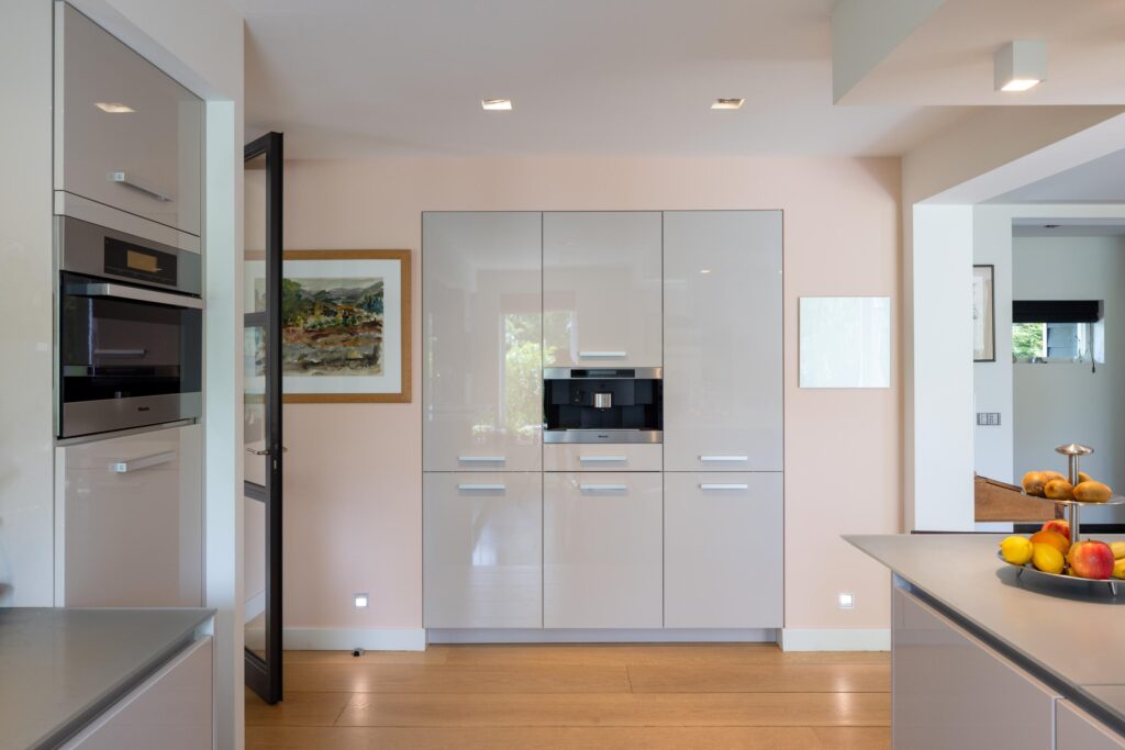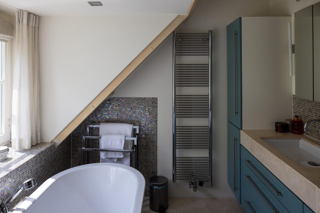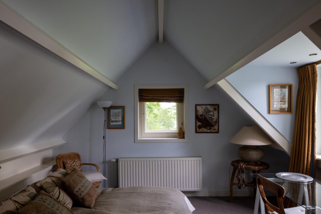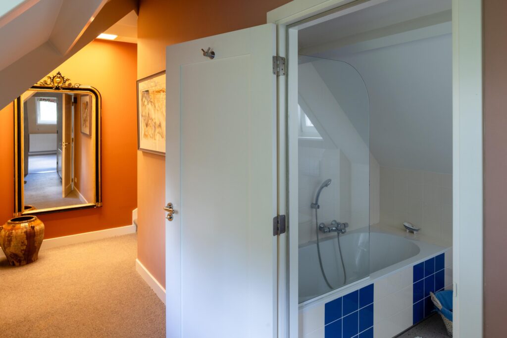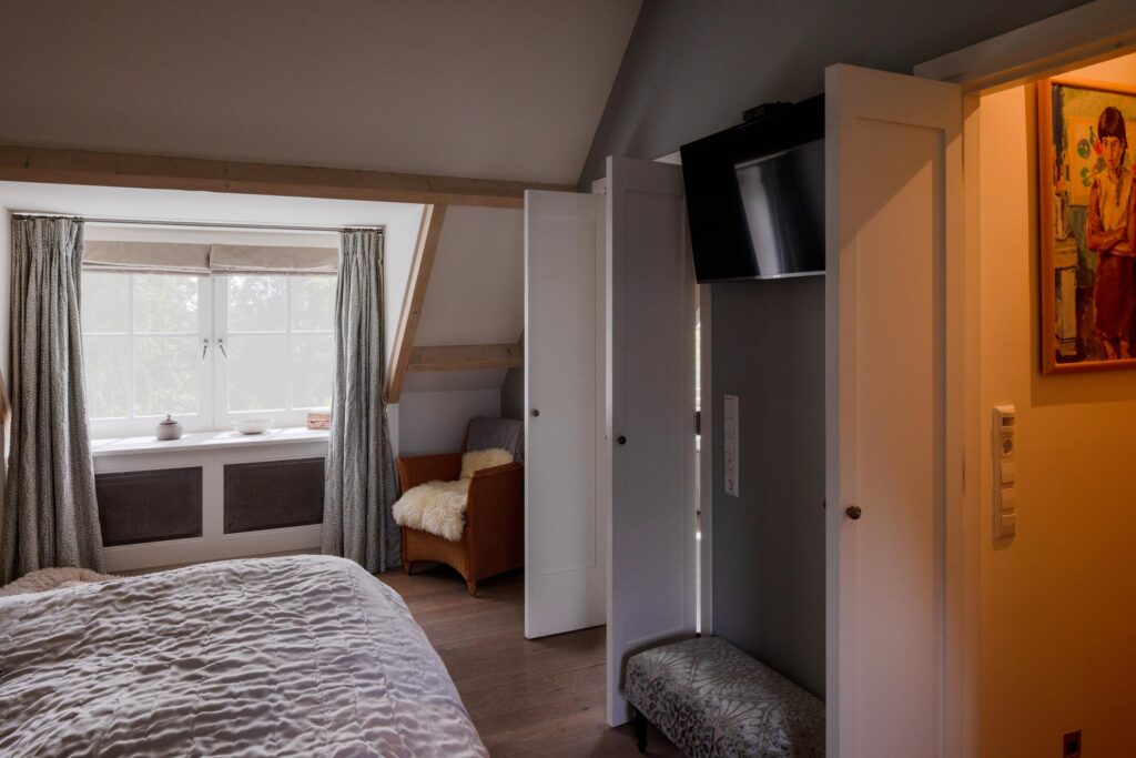 What immediately stands out is the attractive, spacious kitchen and living room with fireplace – the beating heart of the house. Cosiness and functionality come together here. Cooking while looking out over the water, dining with the whole family or having drinks with friends: it’s all possible. The living areas are light and spacious, with large windows that embrace the view and bring the outdoors inside.