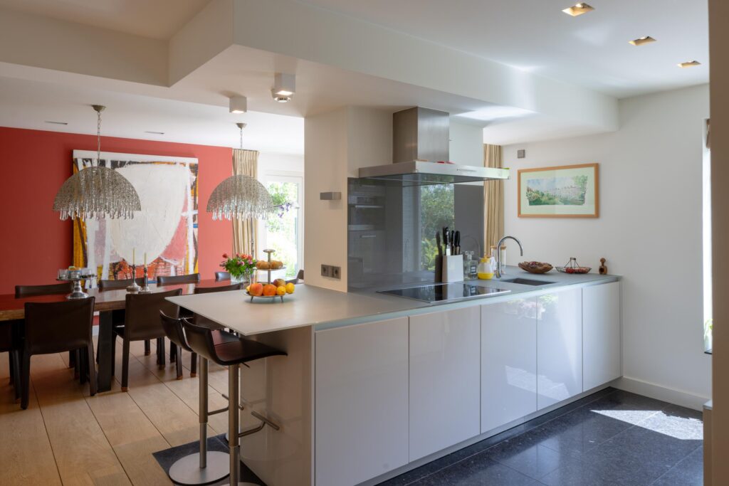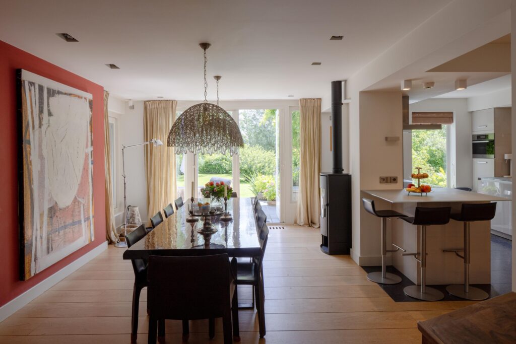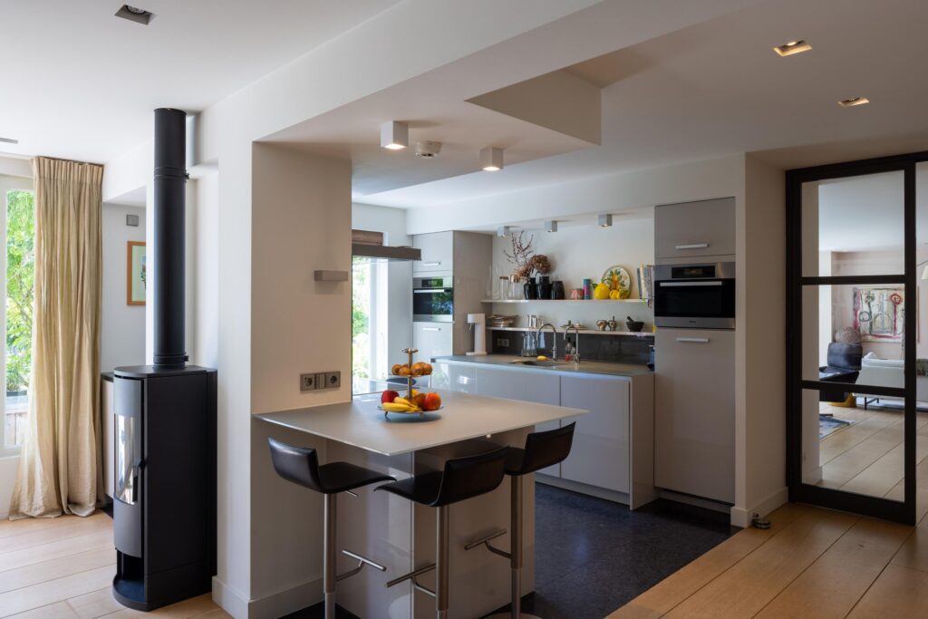 Wat direct opvalt is de sfeervolle, riante woonkeuken en woonkamer met open haard – het kloppend hart van het huis. Hier komen gezelligheid en functionaliteit samen. Koken terwijl je uitkijkt over het water, dineren met de hele familie of borrelen met vrienden: het kan allemaal. De woonruimtes zijn licht en ruimtelijk, met grote raampartijen die het uitzicht omarmen en het buitenleven naar binnen halen.